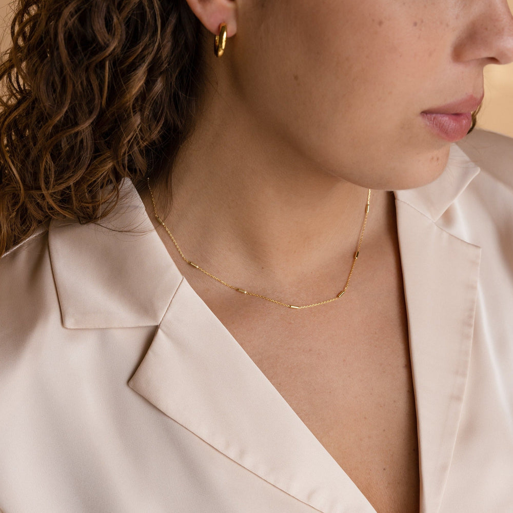 The Bar Station Necklace offers a streamlined and elegant design, featuring a sleek horizontal bar pendant that rests gracefully on the neckline. Crafted for both style and versatility, it complements a variety of outfits from casual to formal. Its minimalist structure ensures durability while adding a subtle, modern touch to your accessory collection. Ideal for everyday wear or layering with other pieces, this necklace balances simplicity with sophistication.