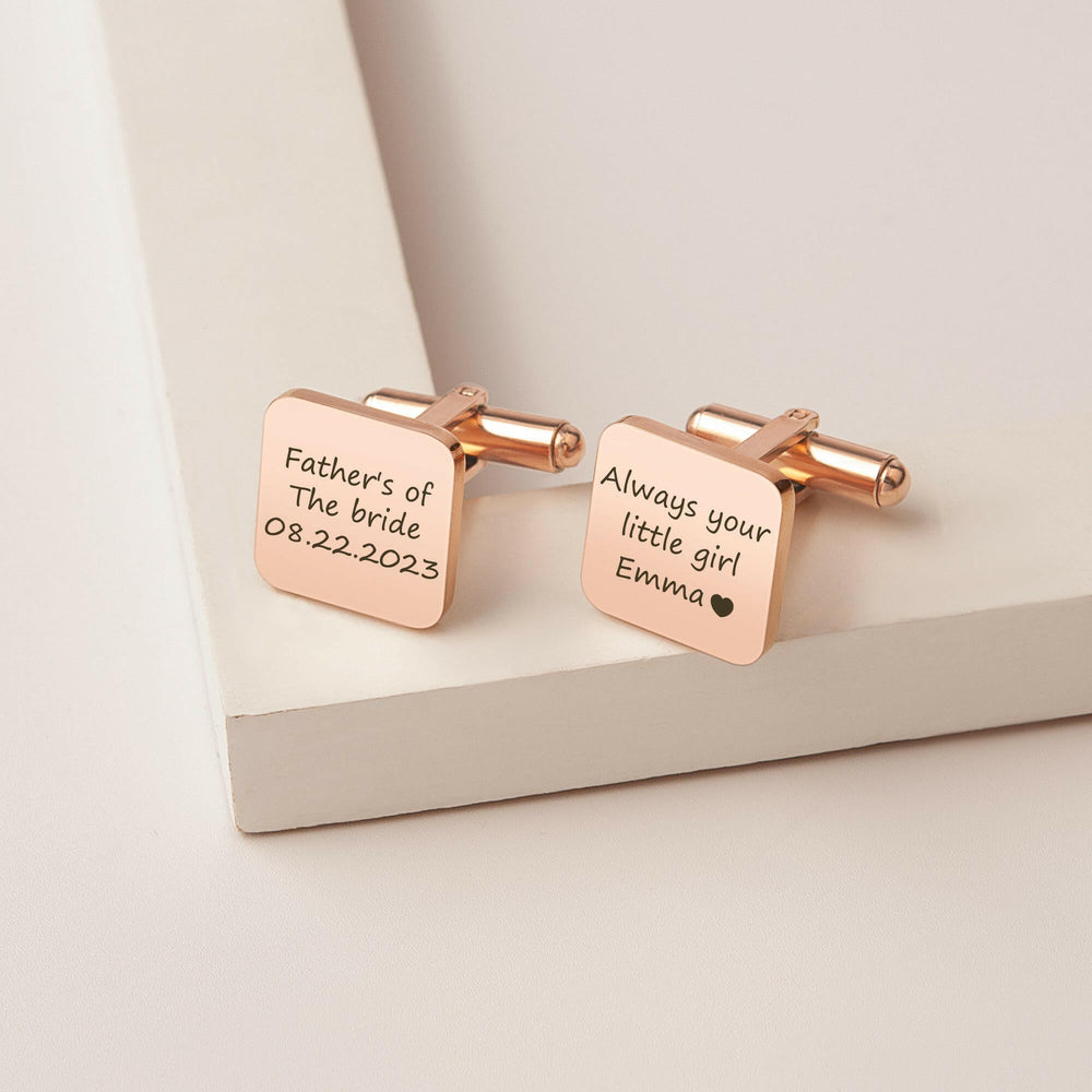 Enhance your wedding attire with our Custom Engraving Wedding Square Cuff Links. Each pair can be personalized with your desired initials or wedding date, making them a unique and meaningful addition to your special day. Made with high-quality materials, these cuff links will add a touch of elegance and personalization to your outfit.
