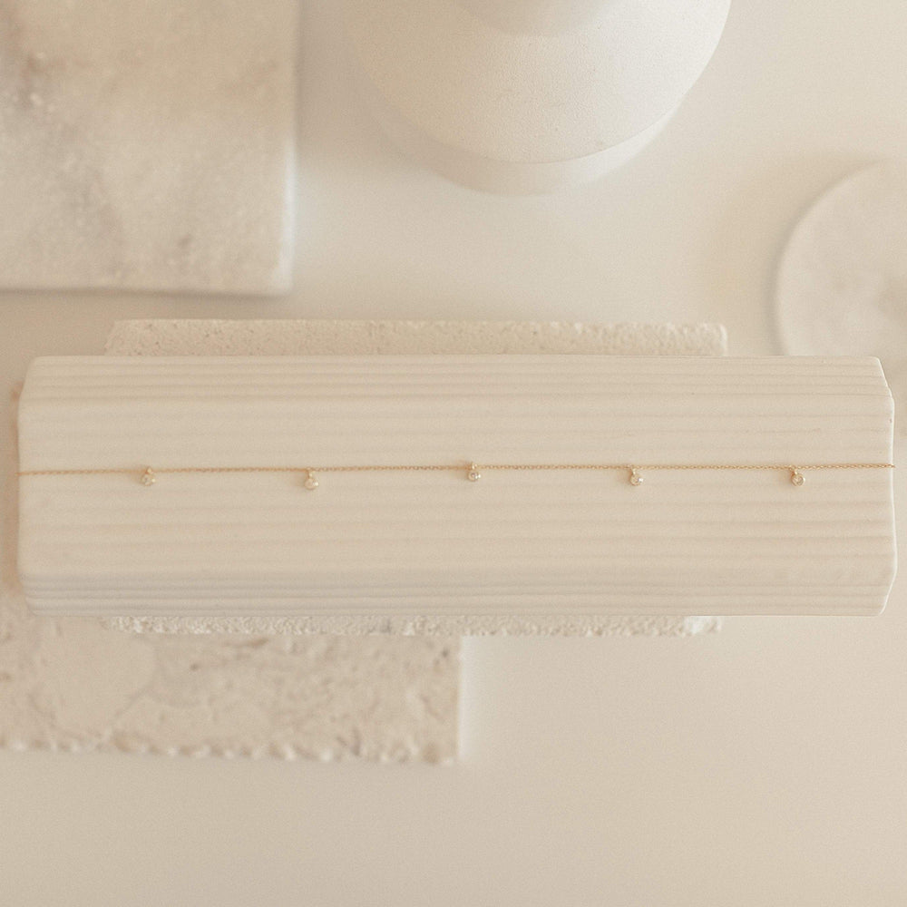 This Diamond Station Necklace showcases a series of precisely set diamonds along a slender chain, delivering a balanced and sophisticated shimmer. Designed with expert craftsmanship, it offers a versatile accessory suitable for dressing up casual outfits or adding a polished finish to formal attire. Its timeless design ensures lasting appeal and refined elegance for any jewelry collection.