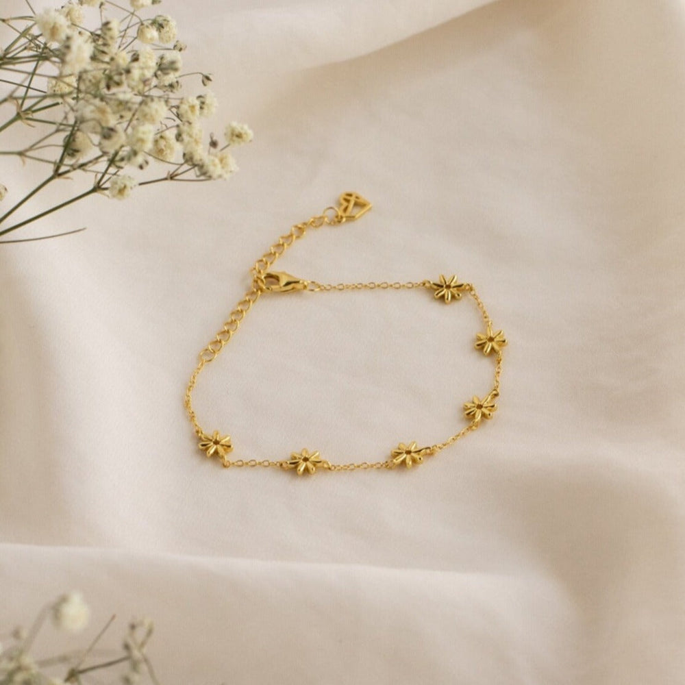 The Flower Child Bracelet embodies delicate craftsmanship with its finely detailed floral design, offering both elegance and a touch of nature-inspired charm. Expertly made to complement a variety of styles, this bracelet adds a subtle yet distinctive accent to your ensemble while ensuring comfortable wear throughout the day.