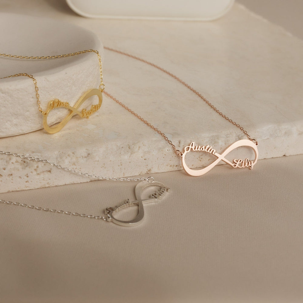 Celebrate timeless connection with the Infinity Name Necklace, expertly crafted to blend elegance and personalization. Featuring a sleek infinity symbol intertwined with a custom name, this necklace offers a meaningful accessory that complements any style. Its durable design ensures lasting wear, making it a perfect gift to symbolize eternal bonds and cherished memories.