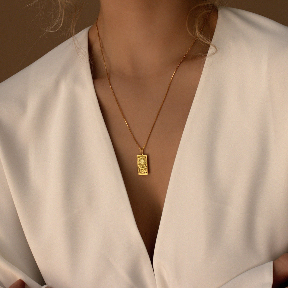 Elevate your style with the Tarot Necklace in Box Chain, featuring a sleek, durable box chain that ensures lasting wear. This accessory blends minimalist design with subtle symbolism, making it a versatile piece for daily wear or special occasions. Expertly crafted, it offers a refined look that complements both casual and formal outfits, delivering both elegance and meaningful detail.