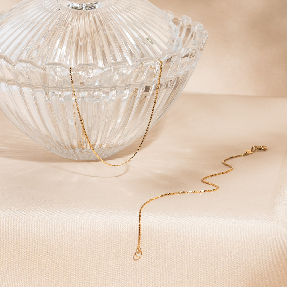Elevate your jewelry collection with this Thin Box Chain Necklace, expertly crafted and gold plated for lasting shine and durability. Its sleek, minimalist design offers versatile elegance, perfect for layering or wearing solo. The fine box chain construction ensures strength while maintaining a delicate appearance, making it an ideal accessory for both everyday wear and special occasions.